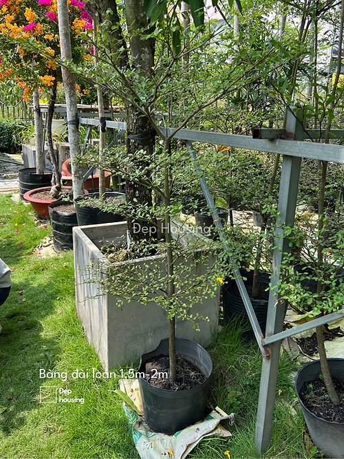 Bàng Đài Loan cao 2m tới 3m loại thân nhỏ ngày càng được ưa chuộng vì dáng cây đẹp mà giá thành lại mềm hơn so với bàng đài loan đã ươm trồng lâu năm (thân lớn, đường kính thân 20-30cm).