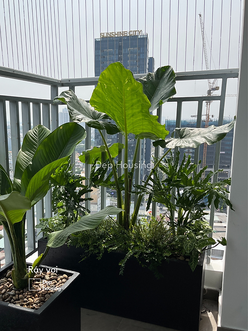 Ráy voi trồng chậu composite tại vườn Đẹp Housing